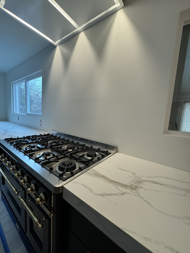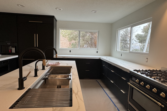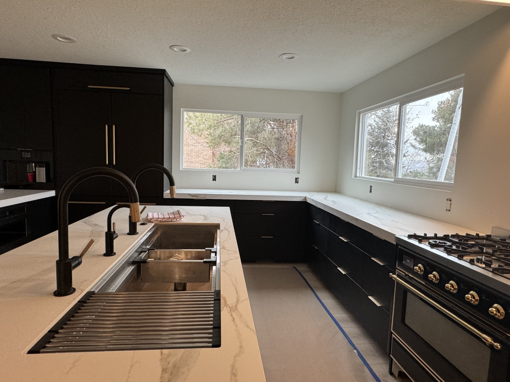 We completed a comprehensive interior update that transformed a Sandy home’s main living level. We moved the kitchen to a new areas and added new floors, paint, porcelain counter tops, a 5ft sink and high-end appliances and finishes. This level received a top to bottom renovation. As the general contractor, we managed the entire project from structural changes to modernizing the layout, and installing the fixtures. Our team then applied a fresh coat of paint throughout the home, delivering a stunning, cohesive finish that perfectly reflected the homeowner’s vision.